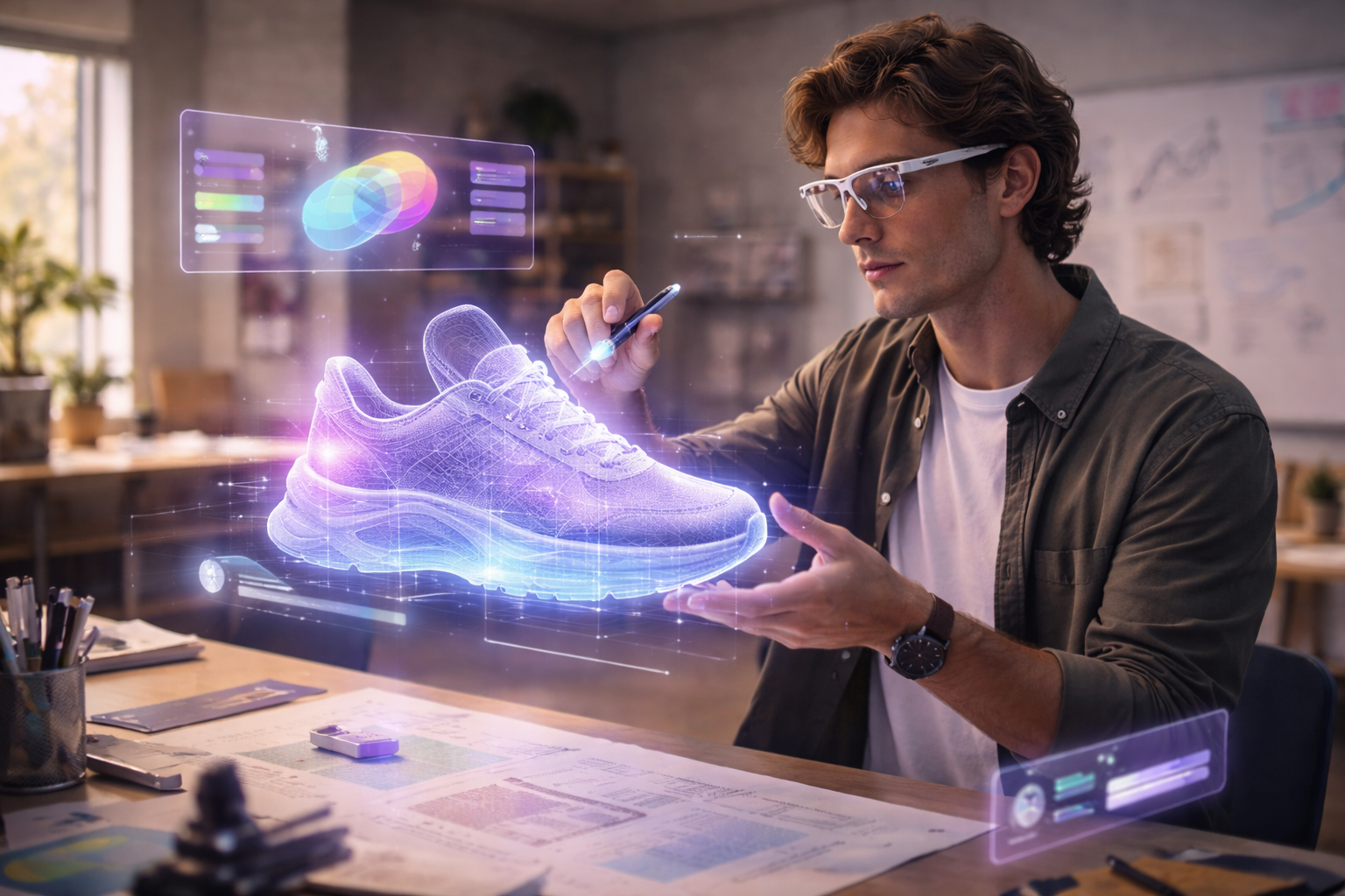 You place rough ideas around you—so brainstorming becomes physical and clear.