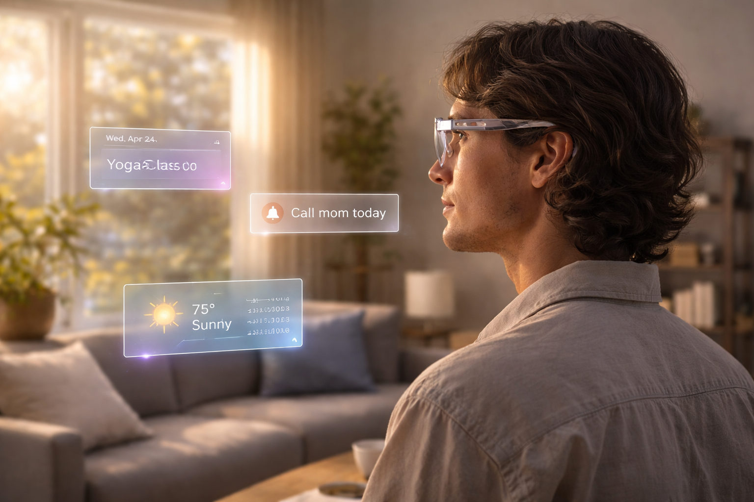 Spatial UI as context, not clutter. Information anchored to place and moment—not fighting for attention.